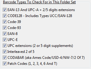 If you know the type of bar code that is in your documents, you can speed up the filing process by only selecting that type of bar code from this list. A bar code type is selected if it has a check mark before it. Click on any type to select or deselect it.