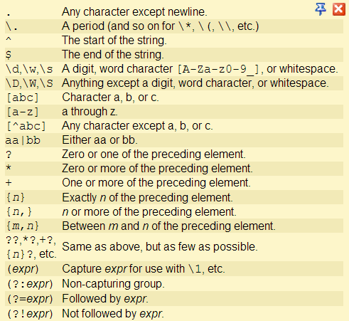 A full discussion of Regular Expressions and how to create them is beyond the scope of this help file. However, you can find all the resources you need to learn about, create and test Regular Expressions at regexpal.com