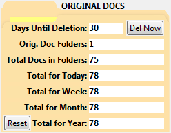 These will be displayed for all the original documents. The statistics for Day, Week, Month and Year will be adjusted when processing starts on each new day. You can reset the statistics to zero at any time by clicking on the Reset button.
